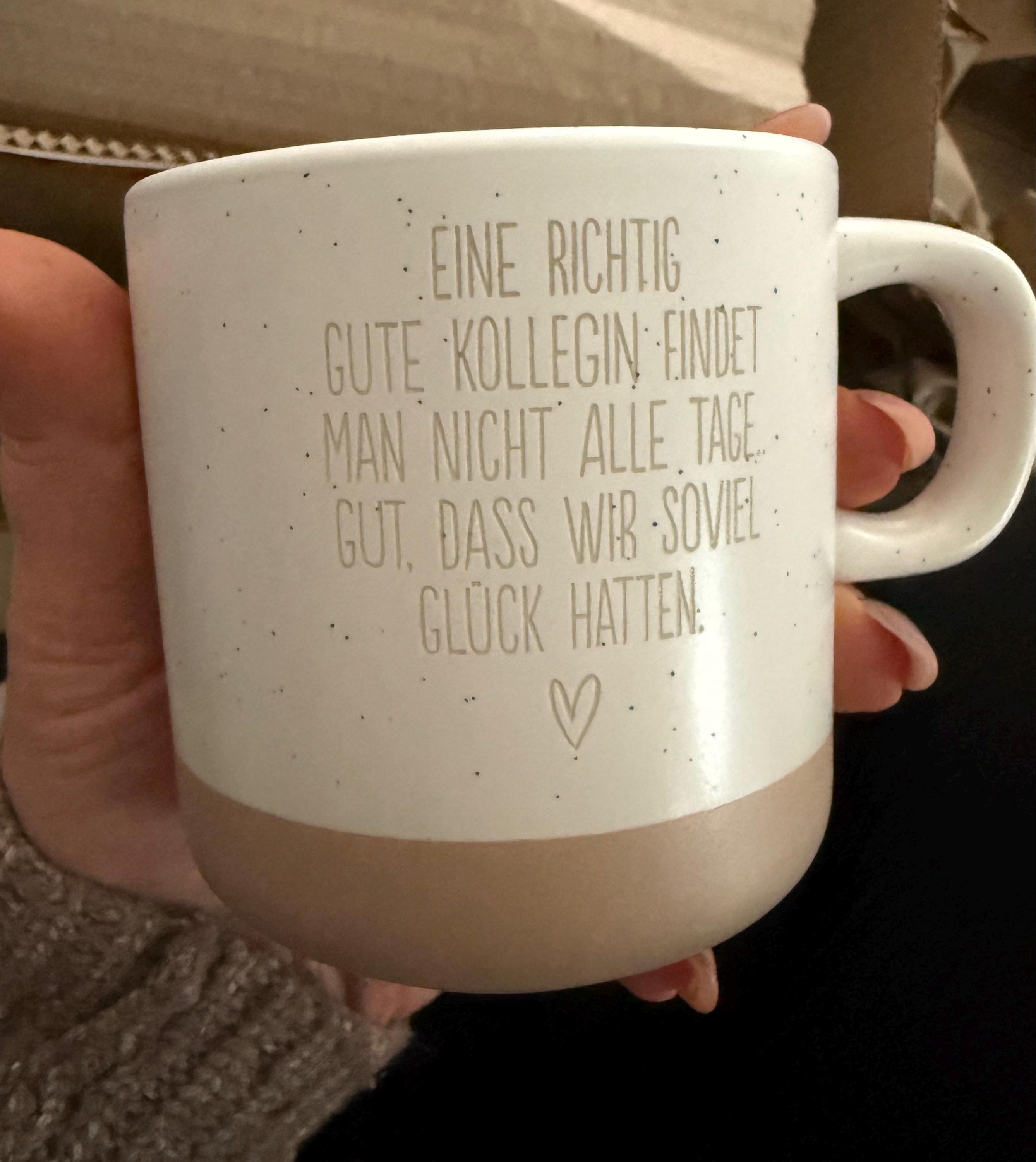 Katharina GaborHochwertige Tasse mit echter Gravur die daher auch Spülmaschinen-fest ist. Versand war super schnell und alle Wünsche wurden zur... Lies mehrHochwertige Tasse mit echter Gravur die daher auch Spülmaschinen-fest ist. Versand war super schnell und alle Wünsche wurden zur vollsten Zufriedenheit ausgeführt! Klare Empfehlung Zeige wenigerPosted on -