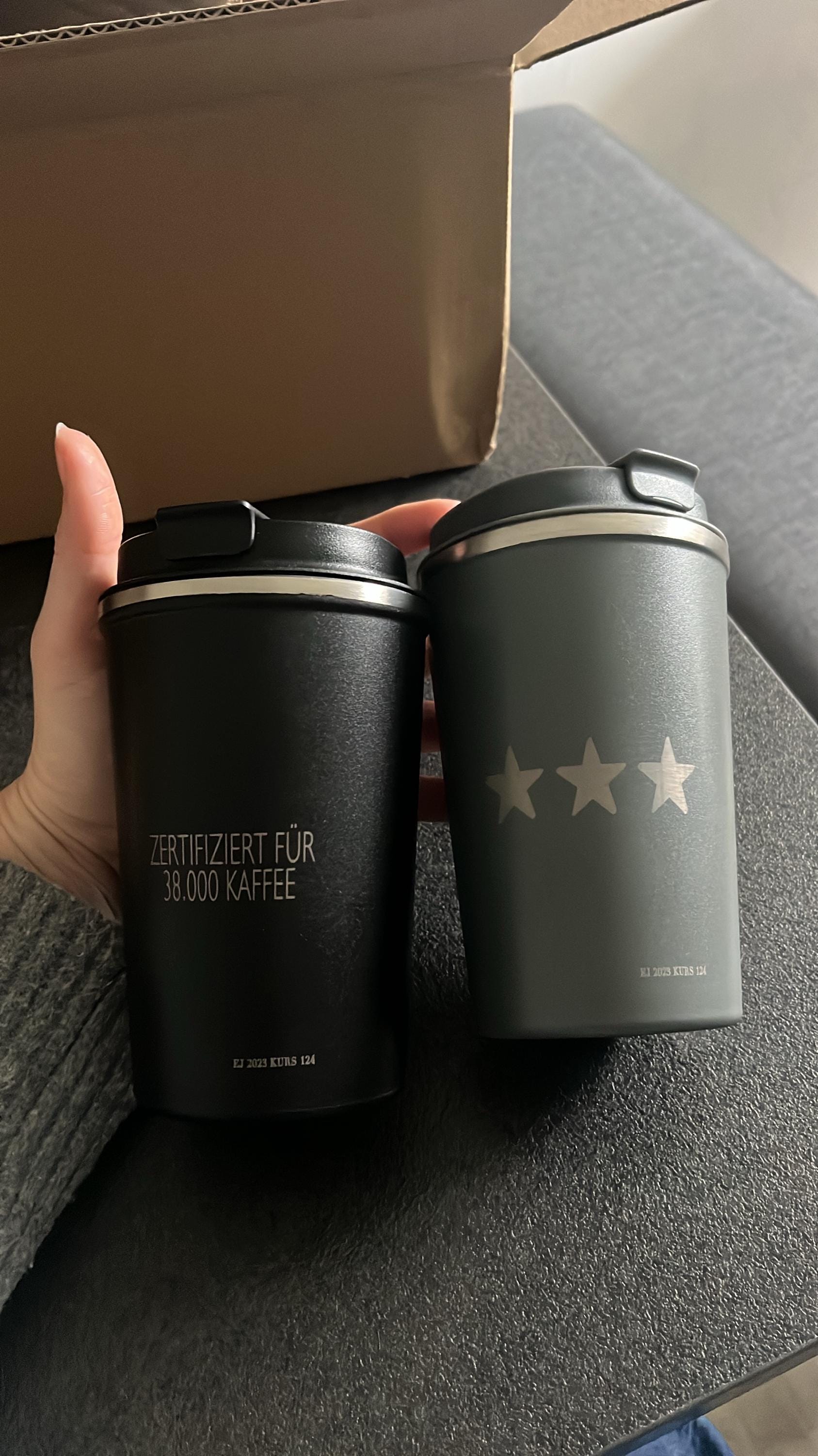 Jeder Thermobecher wird mit viel Liebe in unserer Manufaktur graviert. Die individuelle Gestaltung macht jedes Stück einzigartig – perfekt als Geschenk für Freund:innen, Kolleg:innen, Mama, Papa oder einfach für dich selbst.