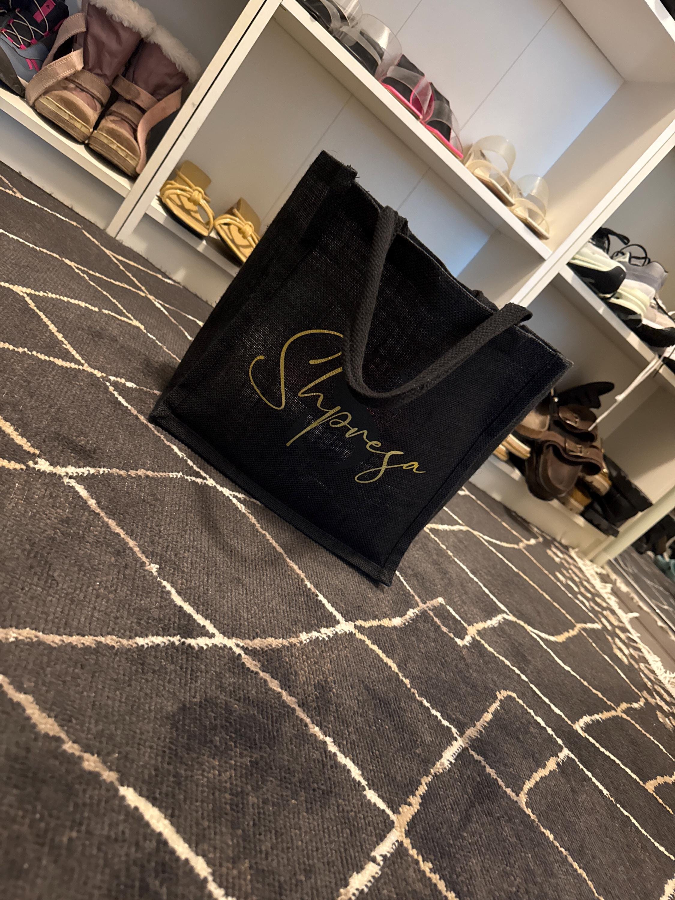 ❤︎ Unsere beiebte Jutetasche mit Monogramm und deinem Wunschnamen mit gepolstertem Tragegriff in klassischem Schwarz. Zum Einkaufen, Verschenken oder Team-Tasche für den Jungesellinnenabschied.